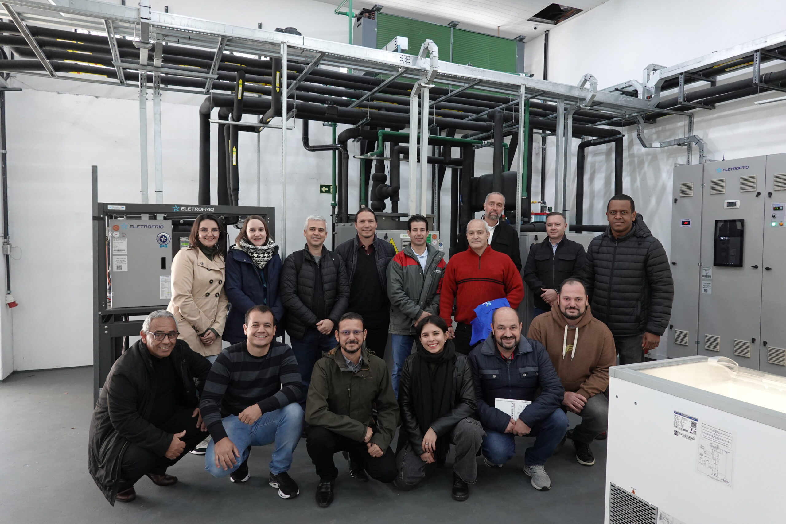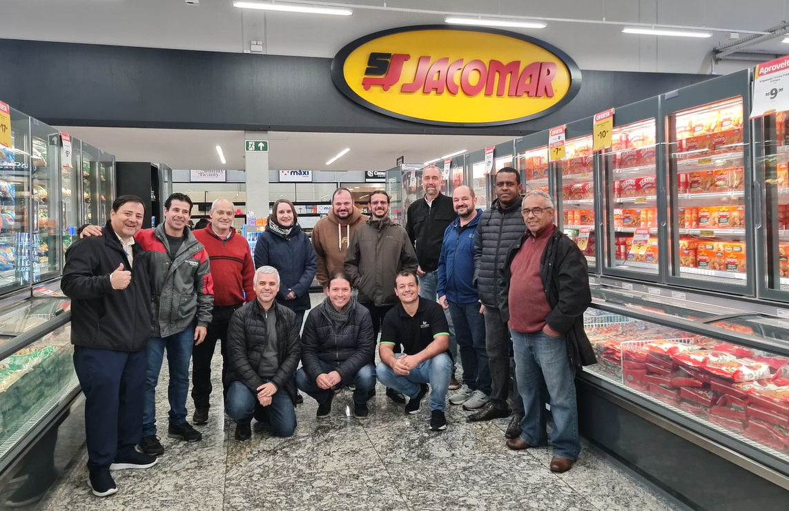 Visita técnica ao supermercado da rede Jacomar, parceiro da Eletrofrio, finalizou o “Treinamento dos Treinadores”. A loja ainda usa uma solução parcialmente sustentável com CO₂ e R-410A, o que demonstra que há espaço para evoluir para uma solução totalmente natural, como a demonstrada no novo laboratório FAPRO-ETP-PBH.