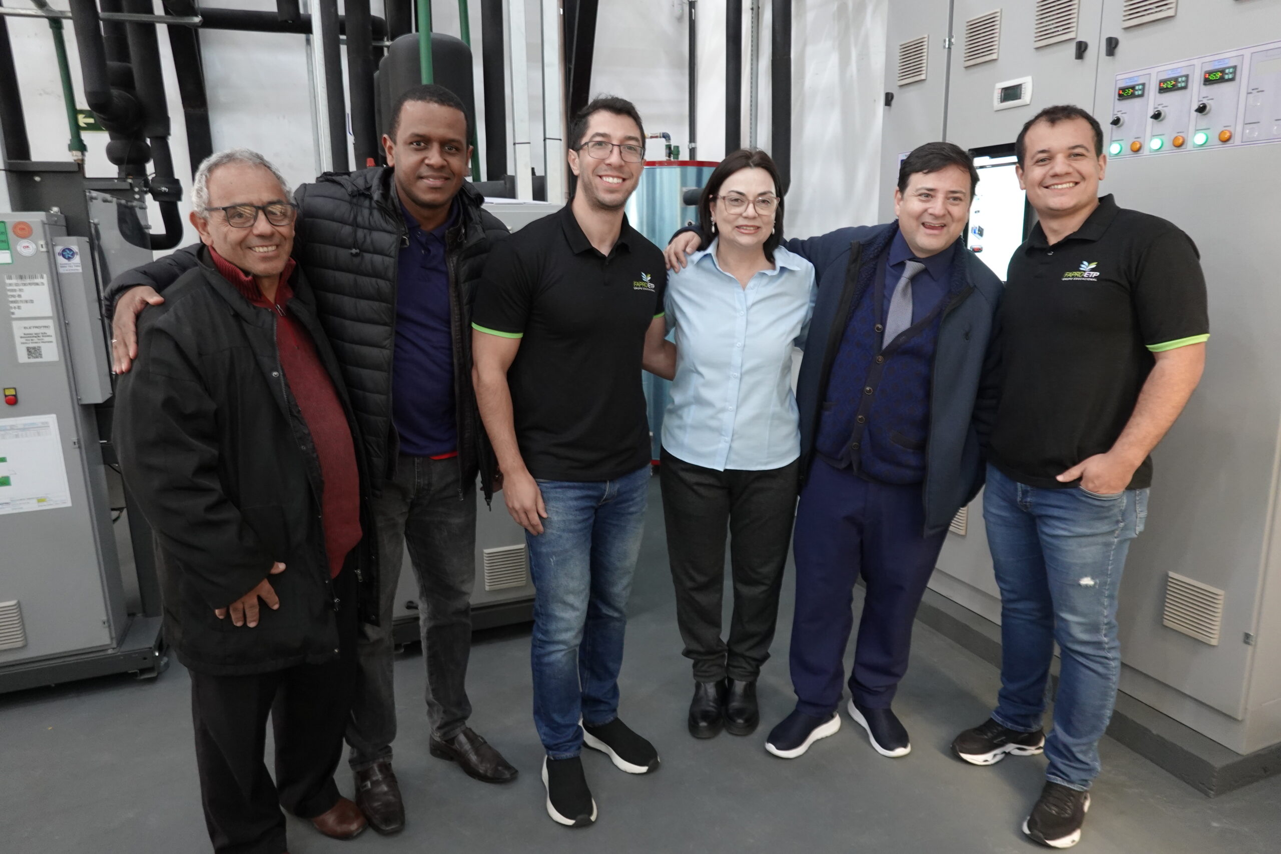 A diretora Márcia (ao centro), o diretor Alexandre, com parte dos professores da FAPRO-ETP no novo laboratório: prontos para as aulas!